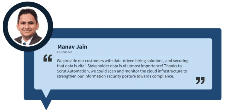 To create a robust information security posture, BarRaiser partnered with Scrut Automation to automatically monitor its cloud environment across compute instances, databases, and repositories to detect misconfigurations and risks. Through GRC automation, they have simplified maintaining continuous compliance with ISO 27001, SOC 2, and GDPR.