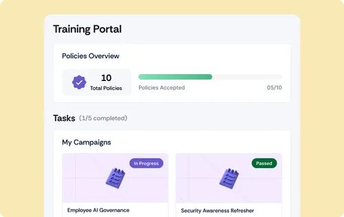- Onboarding and training gaps: Their earlier platform did not support onboarding or security training. Policies could be uploaded, but tracking acknowledgment and training compliance was missing, adding further delays and inconsistencies in audit prep.