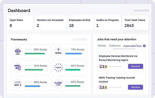 - No compliance-driven deal blockers: Security assessments, which once took weeks, were now handled in days. The constant to and fro between sales and internal teams was minimized with a self-serve trust vault that accelerated customer acquisition and reinforced trust with existing clients.