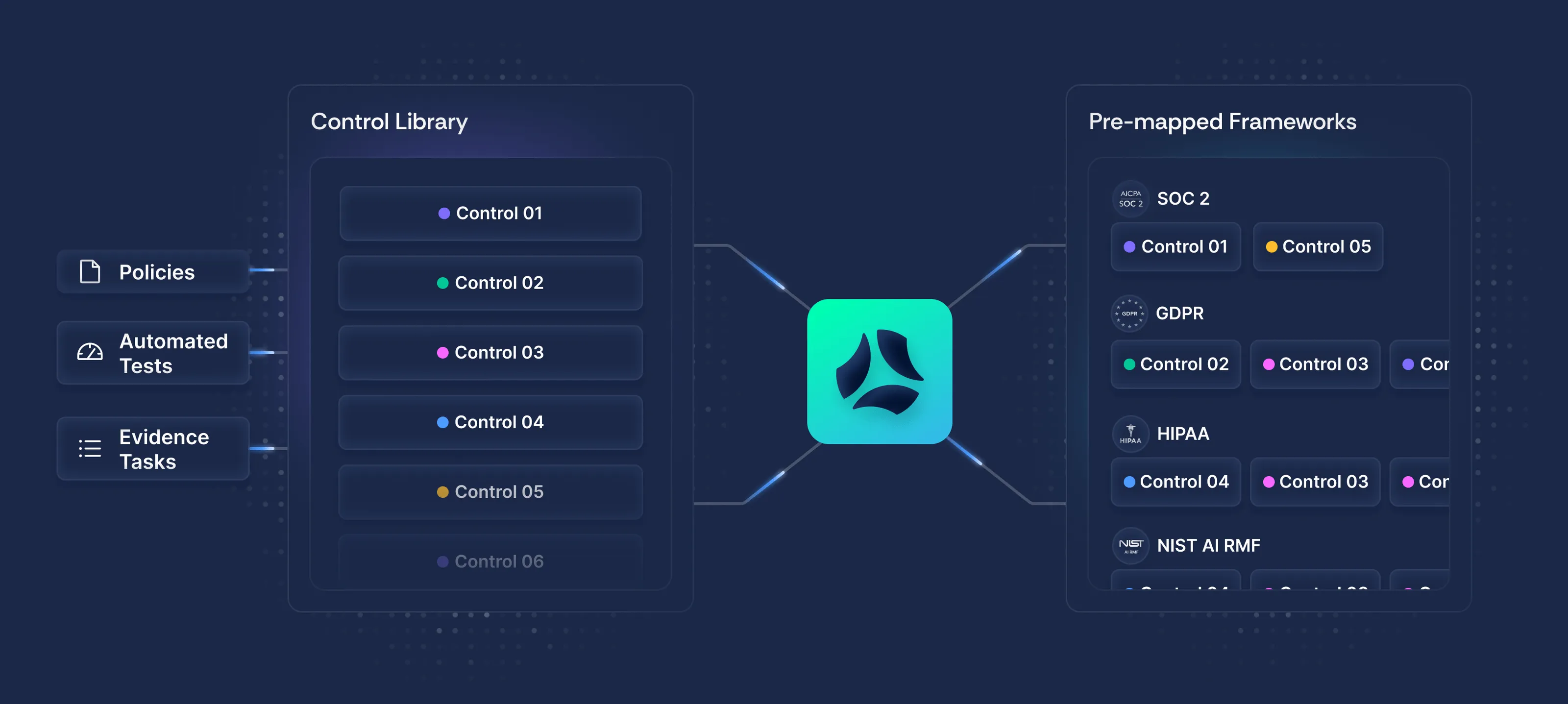 Control chaos like a pro. Centralized controls pre-mapped to across frameworks.