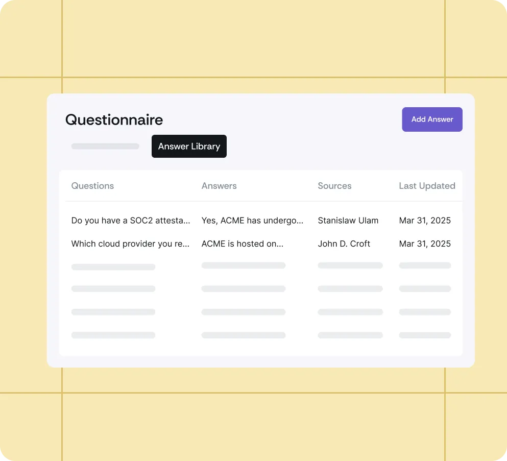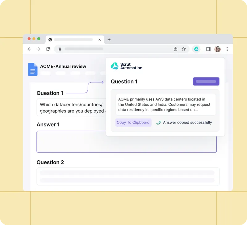 Let customer, partner, or auditor get instant responses to their security questions with Teammates