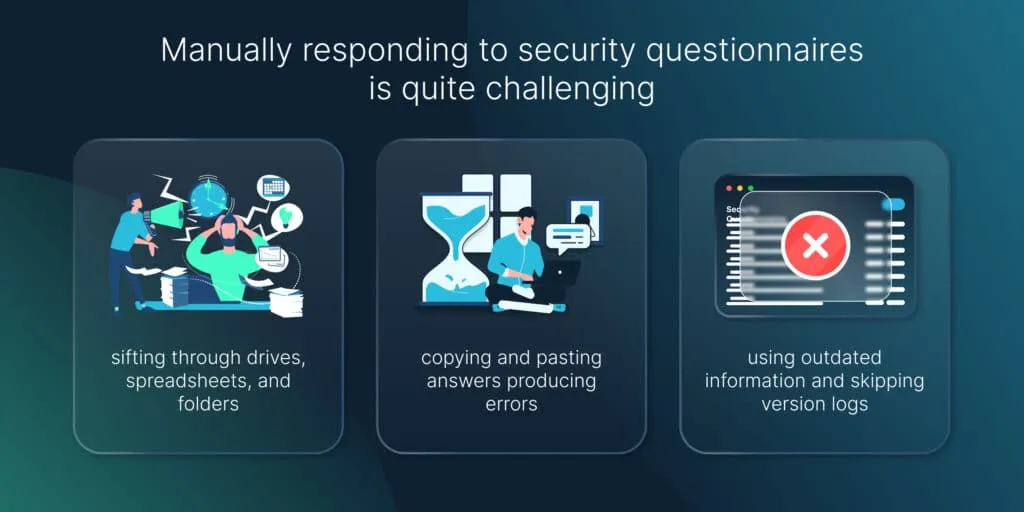 That’s not it! Inconsistencies and errors in responding and a lack of a centralized solution for tracking and distributing the questions internally are other sets of problems that an organization may face.