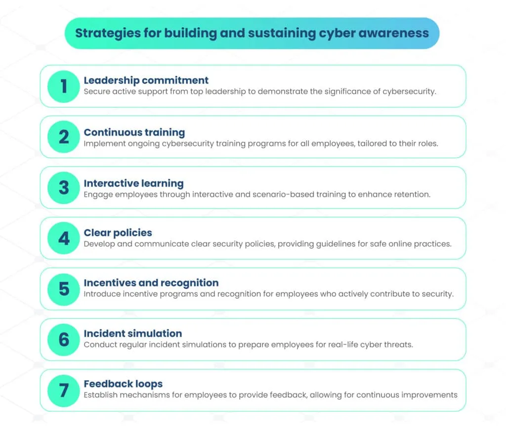 Building and sustaining cyber awareness requires a strategic approach. To help organizations in this endeavor, experts recommend: