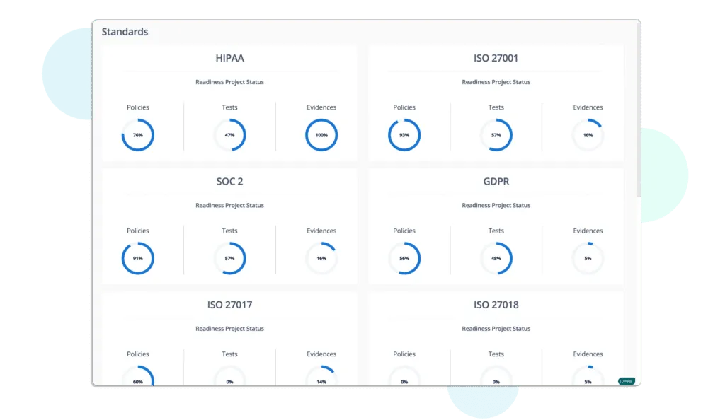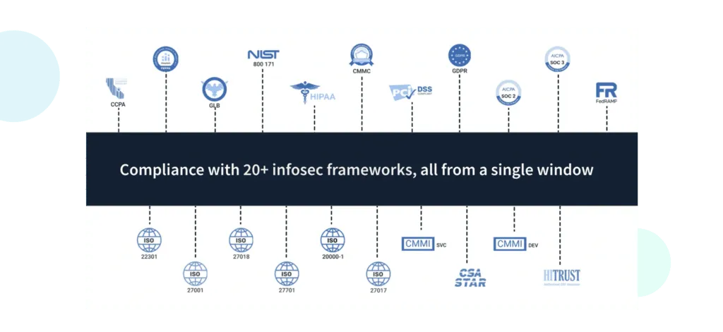 Scrut allows you to track all compliance activities in one place. Since there is a good overlap between many frameworks, you can work on multiple security and compliance frameworks simultaneously.