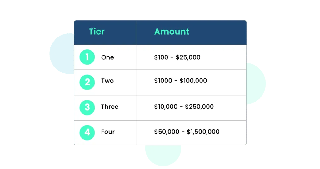 - Tier One: Fines ranging from $100 to $25,000 per infraction. This amount can be revised within a 30-day window if the organization was unaware of the breach and responded promptly once it was identified.