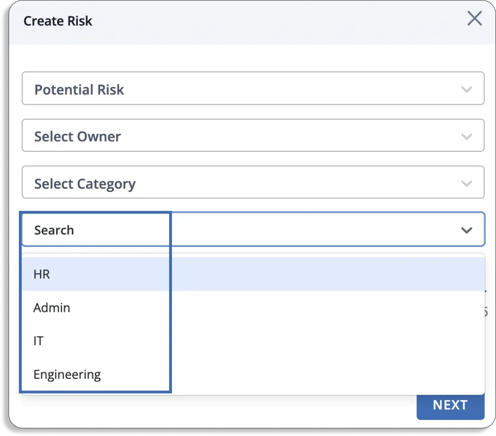 - You can select any department from HR, Admin, IT, and Engineering for the risk.