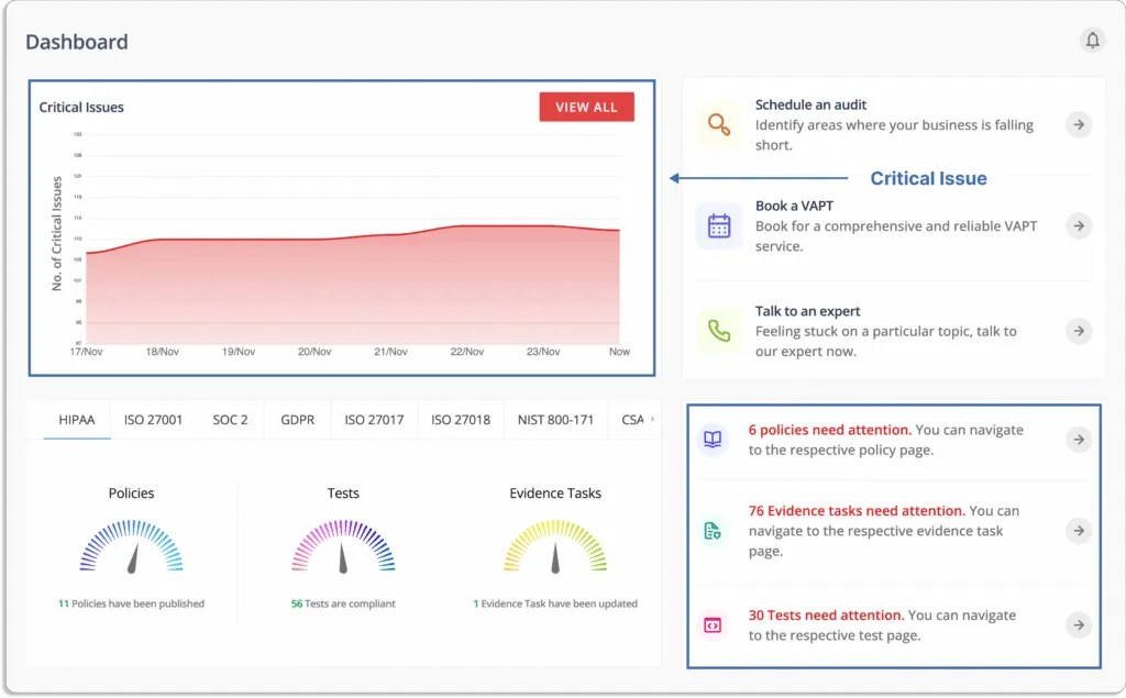 The tools bring all your InfoSec tasks and artifacts into a single place. It enables you to fill compliance gaps in real-time.