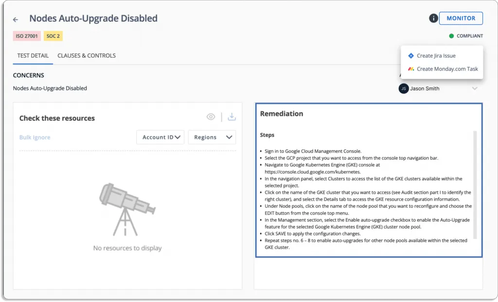 Scrut also gives step-by-step-remediation tasks so that the person responsible can easily resolve the issues.