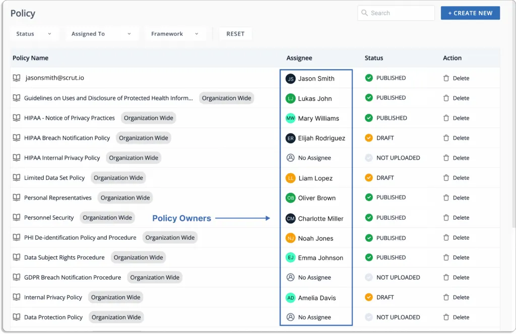 Scrut smartGRC has pre-built policies aligned with popular security and privacy frameworks. These policies are made by industry experts.