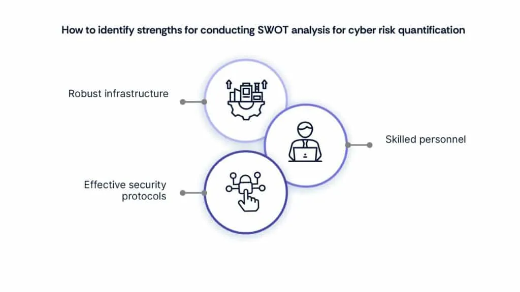 Identifying the internal strengths of an organization related to cybersecurity involves thorough assessment and analysis. Here’s detailed guidance on identifying these strengths: