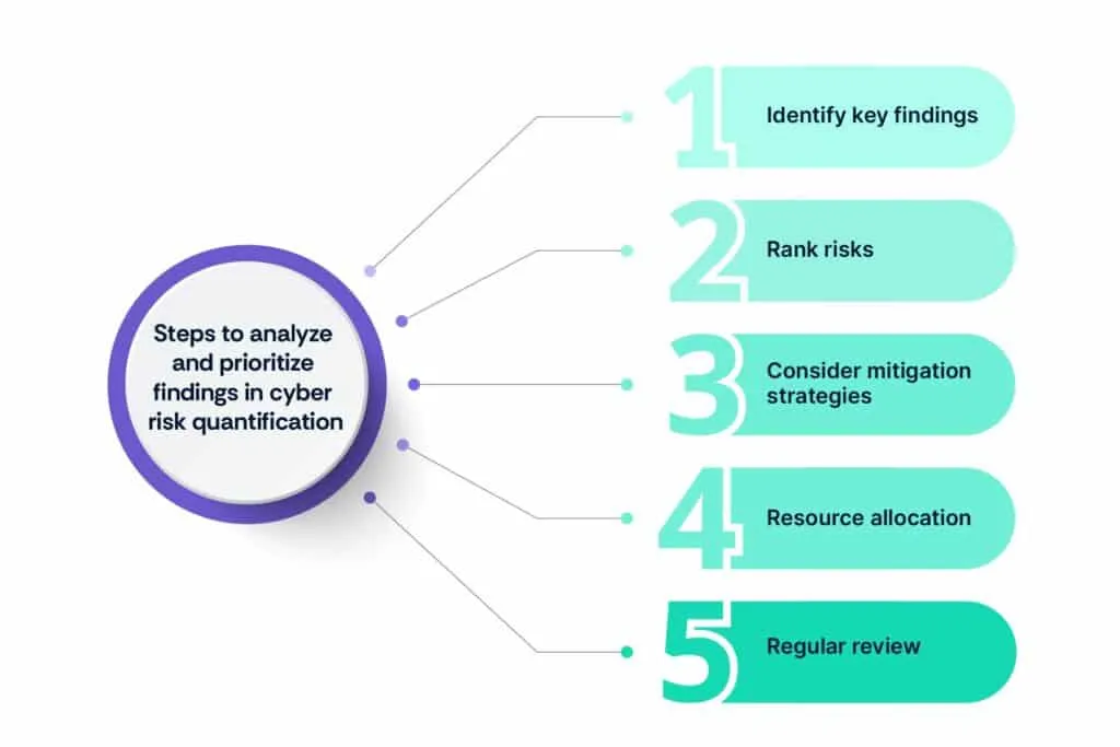 - Risk prioritization: Prioritizing cyber risks based on their severity, likelihood of occurrence, and potential financial impact to focus mitigation efforts on the most critical areas.
