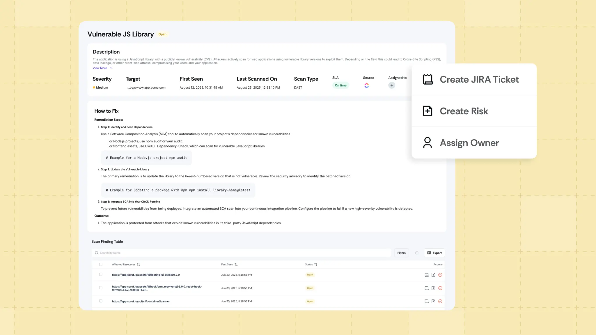 - SLA tracking: Stay on track with timely resolutions for every vulnerability.