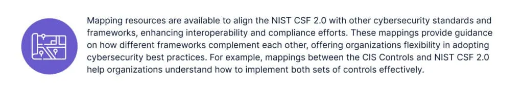 Additionally, tools like the NIST CSF 2.0 Reference Tool simplify the integration of related resources, enabling users to move quickly from CSF outcome statements to relevant guidance and best practices. These mappings enhance the usability and applicability of the NIST CSF 2.0 across various industries and cybersecurity contexts.