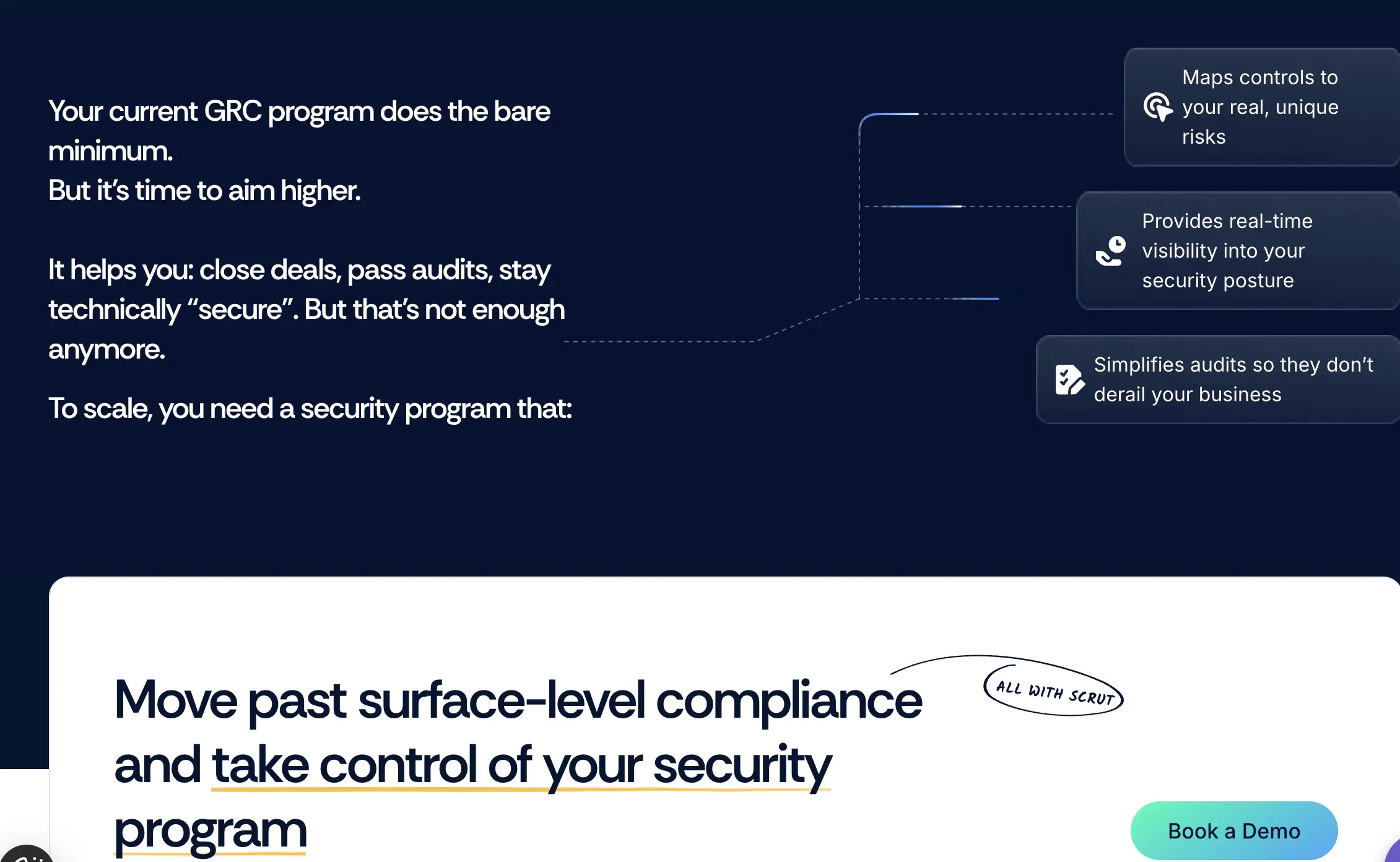 We expanded the site so you can see right away if Scrut fits your team.