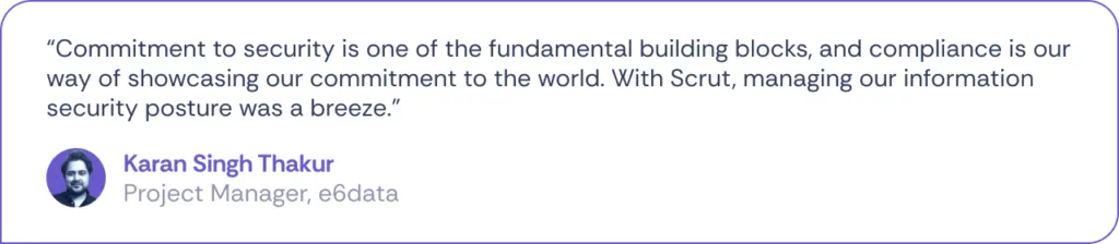 Scrut’s smartGRC platform stands out by offering comprehensive tools for continuous compliance automation, risk management, and governance, ensuring that businesses can maintain a strong security posture while focusing on their core operations.