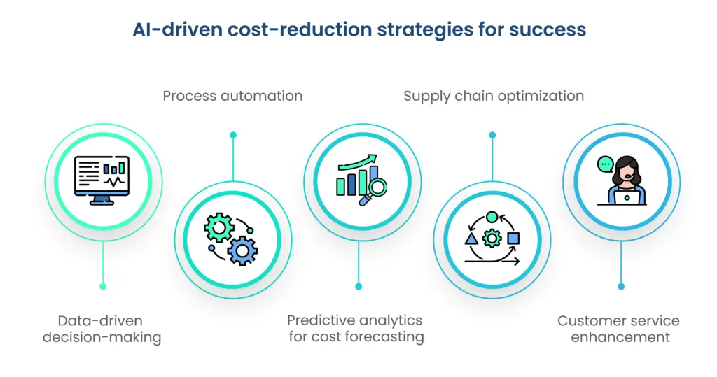 Automation of routine tasks is a key AI-driven strategy. Companies achieve cost reductions by deploying AI to automate manual and repetitive processes, freeing up human resources for more strategic and value-added activities.
