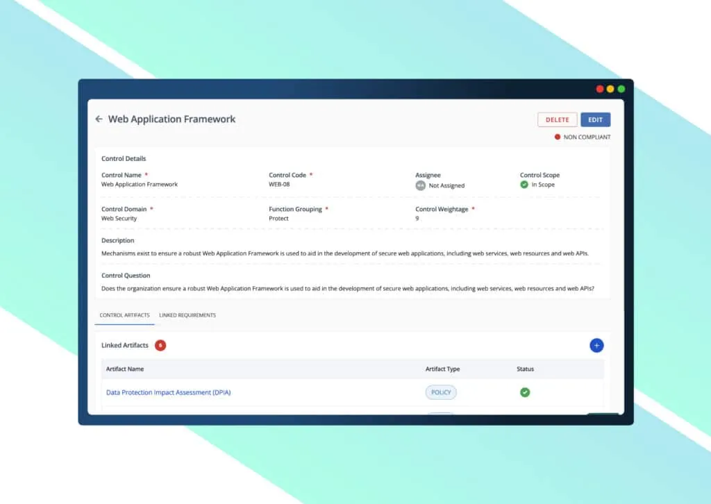 With a set of common controls for all frameworks, the effort required to manage individual artifacts of those controls (such as policies, evidence documents, remediation tasks, etc.) is also significantly reduced, allowing fintech organizations to focus on other important aspects of their business.