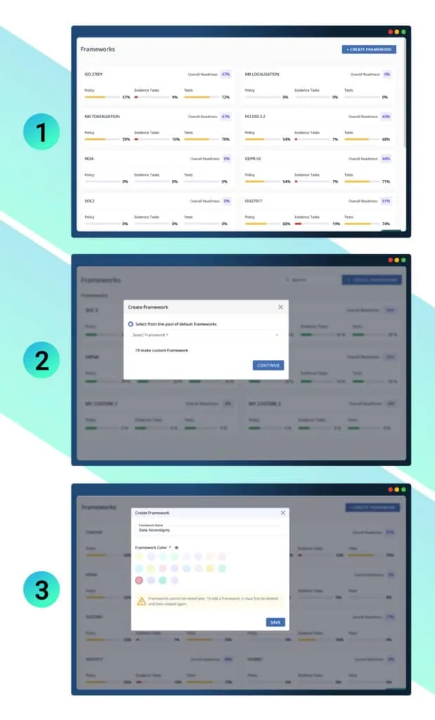 It also allows organizations to create their own custom framework according to their requirements by choosing from a pool of 25+ frameworks.