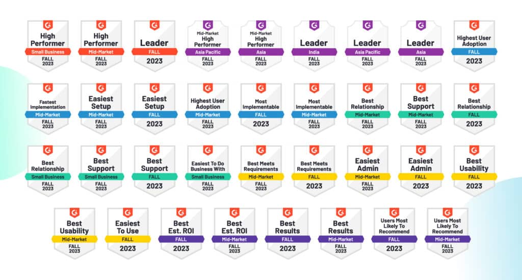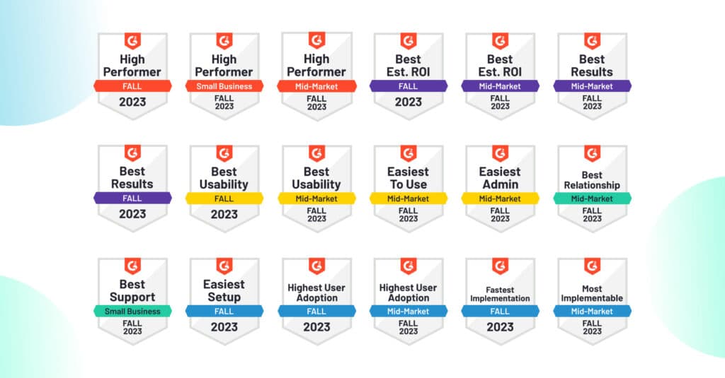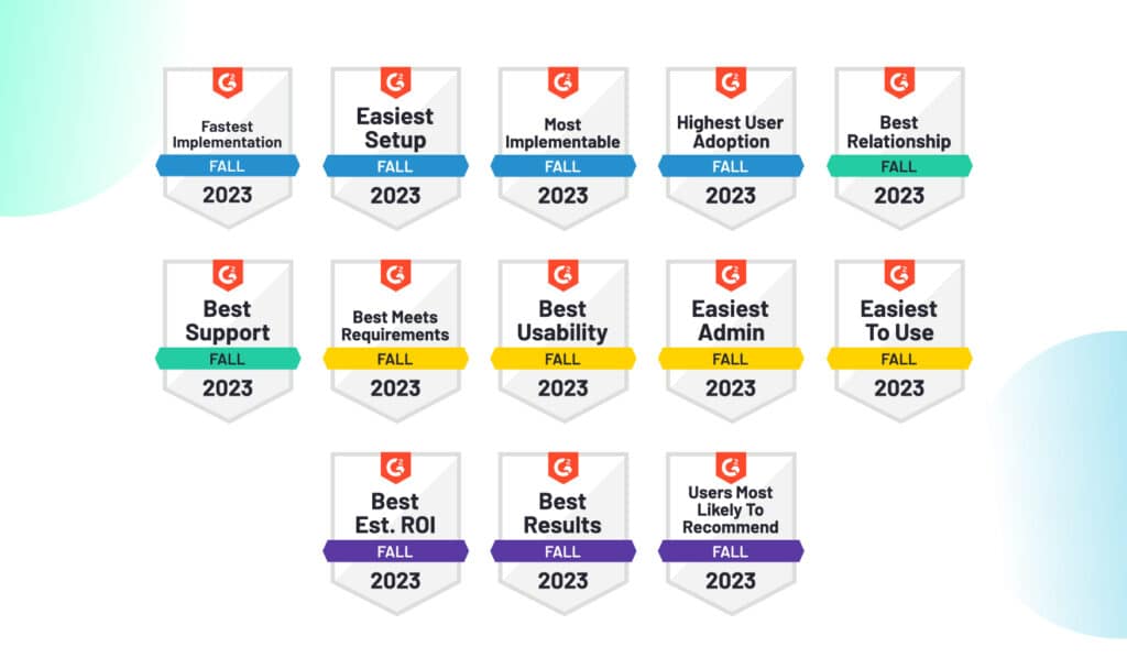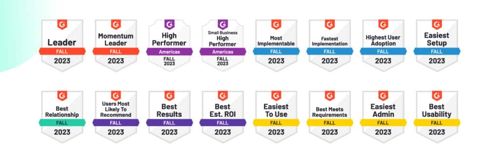 Here is a run-through of all the badges we were awarded in G2’s Fall 2023 Report.