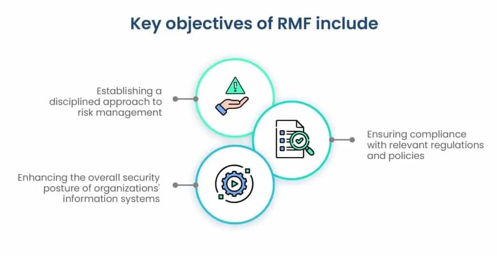 The primary objectives of the RMF are to establish a disciplined and structured approach to managing cybersecurity risks, ensure compliance with relevant laws, regulations, and policies, and enhance the overall security posture of organizations’ information systems. By following the RMF, organizations can identify, prioritize, and address security risks effectively.
