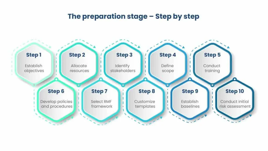 In the preparation stage of applying the Risk Management Framework (RMF), organizations should undertake several key steps to ensure a smooth and effective implementation. Here’s a step-by-step guide:
