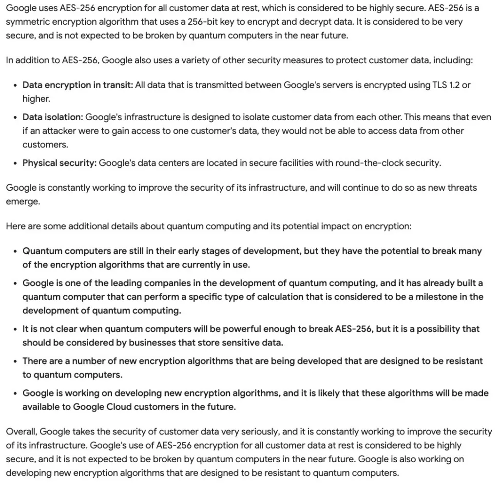 While having an “off-the-shelf” security white paper is never a bad thing for any organization to have, AI lets you take it to the next level. Using Google’s Bard, for example, you can quickly rewrite one of the company’s own security white papers to address the implications of quantum computing.
