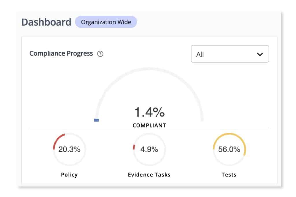 The platform supports innovative dashboards that help you stay on track of your completed policies, assigned evidence, and tests.