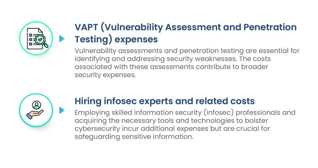 Security is a fundamental aspect of compliance, and organizations are required to invest in various measures to ensure the confidentiality and integrity of their systems and data. Some such expenses are as follows: