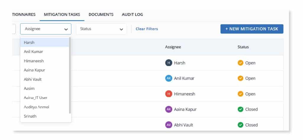 Once risks are identified, Scrut’s platform offers the opportunity to create mitigation tasks to remediate them and allows for collaboration with other team members as well.