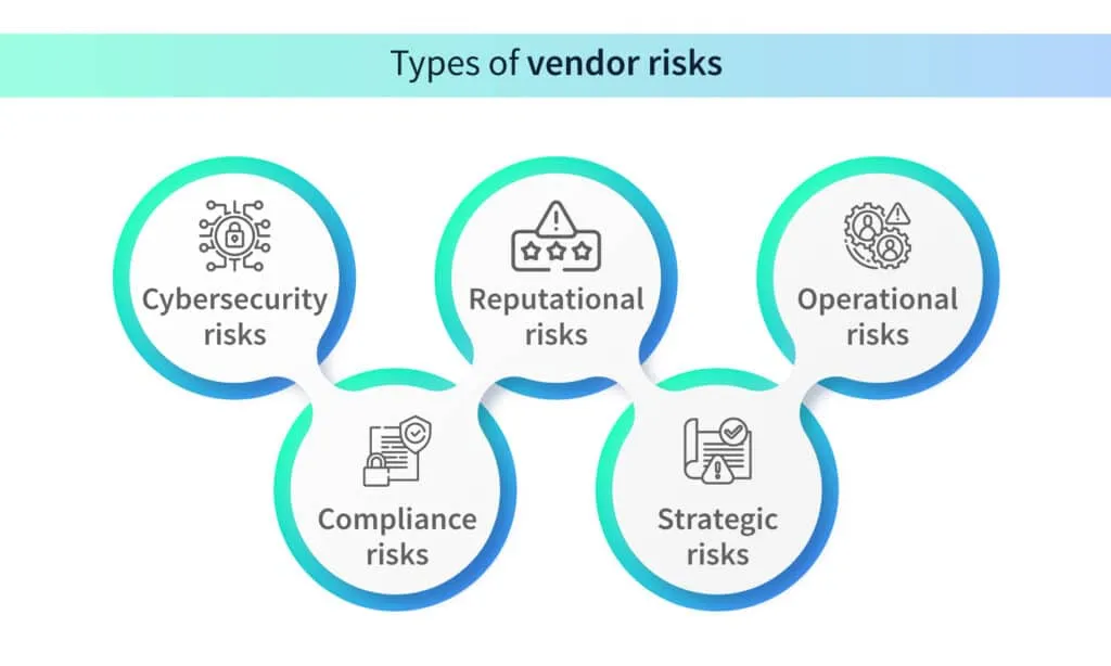 Before diving into the evaluation process, it is important to identify the different risks that could arise when entering into a business agreement with a vendor. It’s crucial to cover all your bases and have a clear understanding of the potential risks associated with different kinds of vendors. Here is a list of the most common vendor risks.
