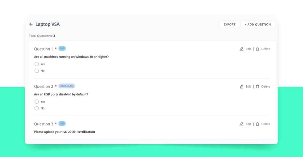Here are some examples of questions that could be included in a vendor risk assessment questionnaire.