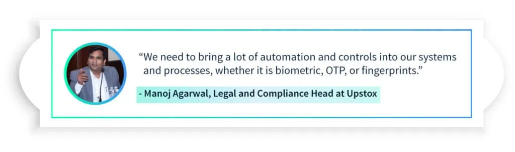 Manoj Agarwal, Legal and Compliance Head at Upstox, shared data from a Deloitte Report, which stated that India’s fintech adoption rate is 87%, while the global average rate is 64%.
