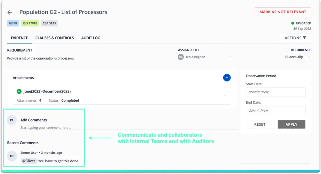 Our GRC platform enables effective collaboration with your auditors.