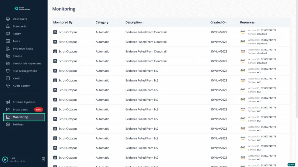 Scrut deeply integrates with your cloud environments, identity providers, HRMS, and other tools and automatically collects evidence from them. It automates up to 70% of your evidence collection and saves a lot of time and manual effort.