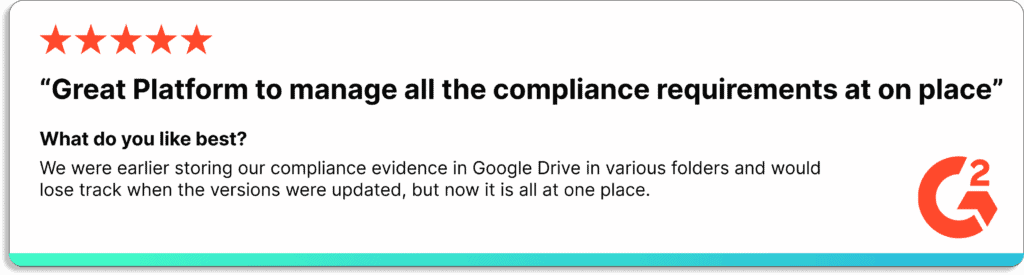 Earlier, one of our customers was keeping the evidence in Google Drive in various folders and was losing track when the versions were updated. With Scrut, that problem was immediately solved.