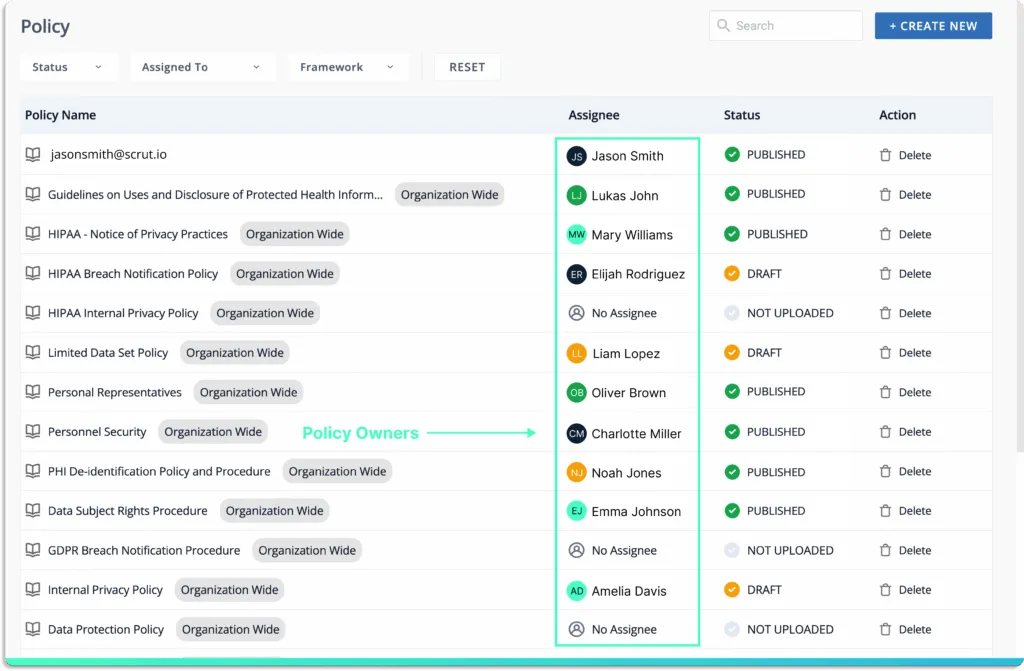 You can also assign tasks like remediation, uploading policies, etc., to different people on the Scrut platform.