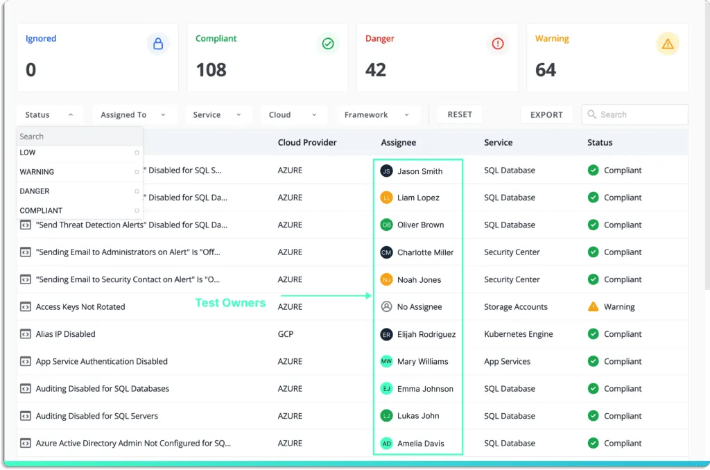 Additionally, you can assign ownership for policies across your organization and keep track of policy status. With this record, you can always be sure that all security controls have been applied and are ready for your organization’s security audit.